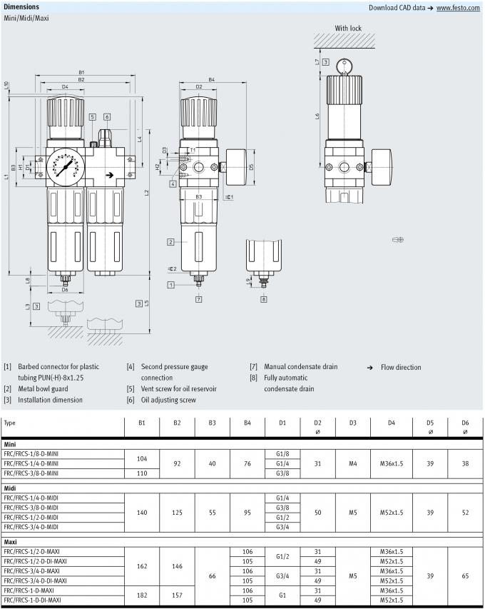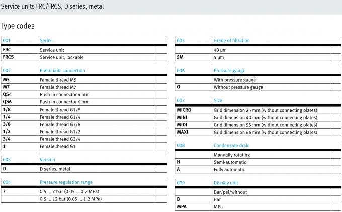 | Design | Filter regulator with pressure gauge Proportional standard mist lubricator Proportional standard mist lubricator |
