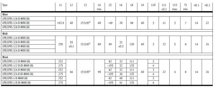| Maxi | G1/2 | 192617 | LFR-1/2-D-5M-O-MAXI1) | 186490 | LFR-1/2-D-O-MAXI1) | ||