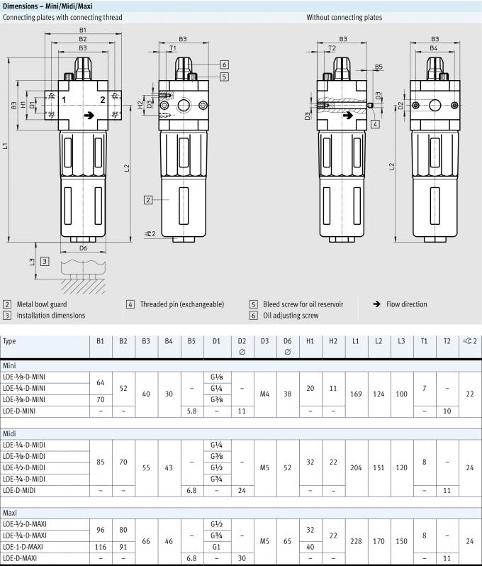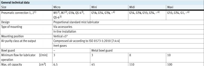 | Min. flow rate for lubricator function | 3 l/min |